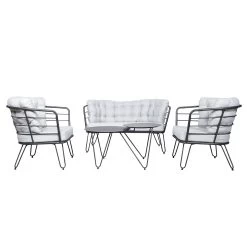 Die Alu-Loungegruppe ‚Bella‘ hilft Ihnen, Ihre Sitz- und Dining-Landschaft im Outdoorbereich mit maximalem Komfort zu gestalten. Diese Loungegruppe überzeugt durch stabiles und leichtes Gestell aus Aluminium in der Farbe Schwarz und weich gepolsterte Auflagen in Grau, die im Lieferumfang bereits inklusive sind.