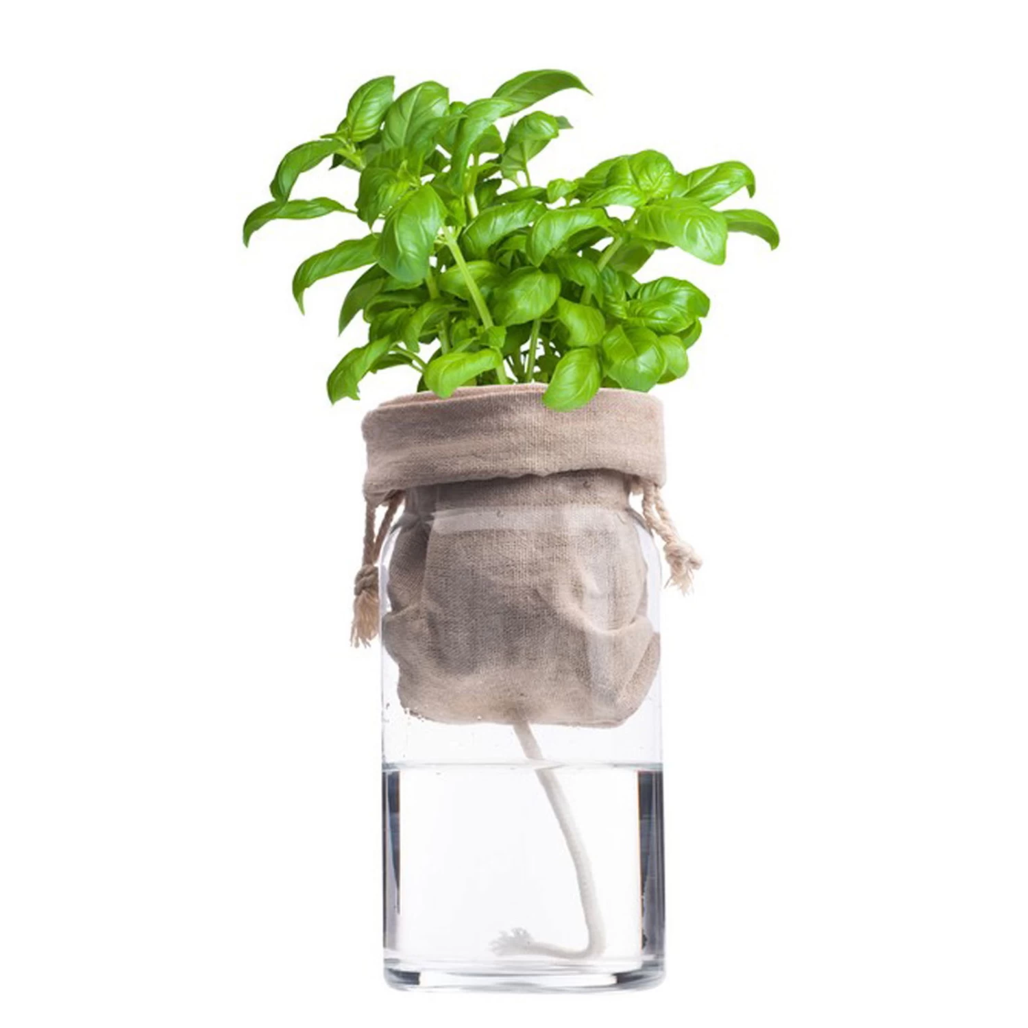 Das Anzuchtset ‚Huh!?‘ stellt physikalische Gesetze scheinbar auf den Kopf und begeistert mit außergewöhnlicher Optik. Durch eine Schnur mit Kapillarwirkung steigt das Wasser aus dem unteren Gefäß hoch und hält das Substrat feucht. Für das frische Bio-Basilikum entstehen auf diese Weise optimale Bedingungen.