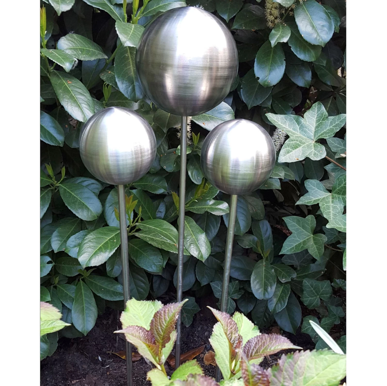 Beetstecker Rosenkugel, 10 Cm, Edelstahl / Matt Gebürstet, Rosenstab 80 Cm
