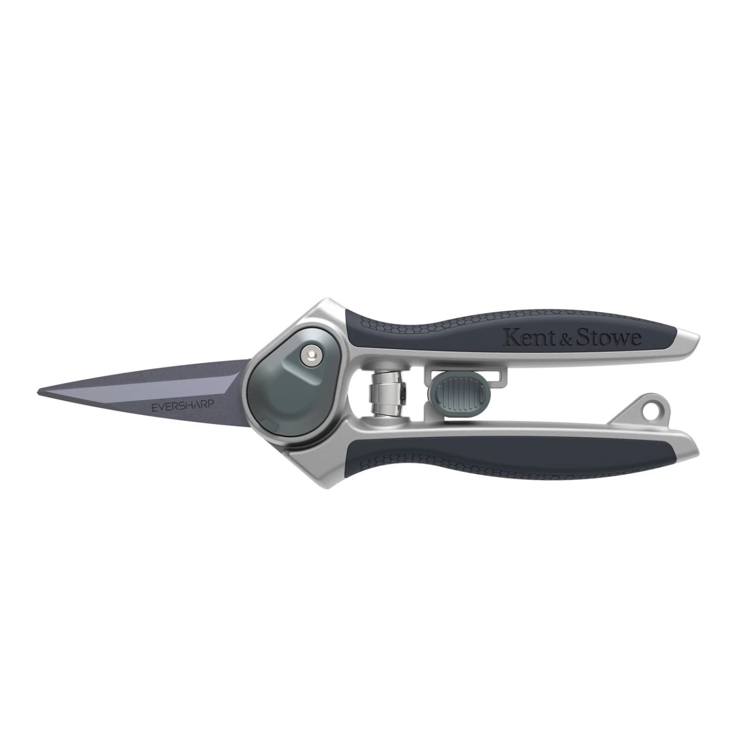 Die ergonomisch designte Gartenschere von Kent & Stowe eignet sich optimal zum Schneiden von Blütenstielen mit einem Durchmesser von bis zu 6 Millimetern. Dieses funktionelle Gartenwerkzeug überzeugt mit ergonomischem Design und patentierter Eversharp™-Technologie für ultrascharfe Klingen ohne Nachschleifen.