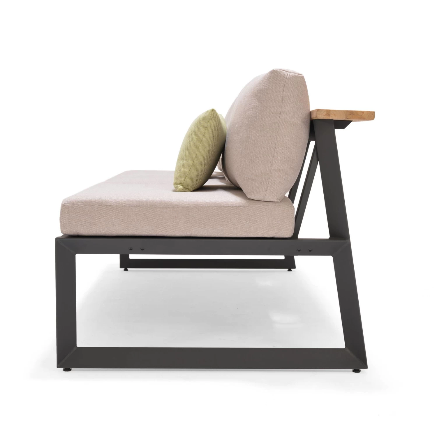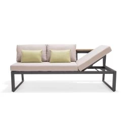 Genießen Sie einen Blick ins Grüne und profitieren Sie dank der Dining-Bank ‚Jimmy‘ von ausgezeichnetem Sitzkomfort. Der Dreisitzer im angesagten Industrial Style überzeugt mit einem höhenverstellbaren Rückenteil und ist in der Mitte bis zu einem Gewicht von 160 Kilogramm belastbar. Die witterungsbeständigen Auflagen mit Bezug aus Olefin sind im Lieferumfang inklusive.