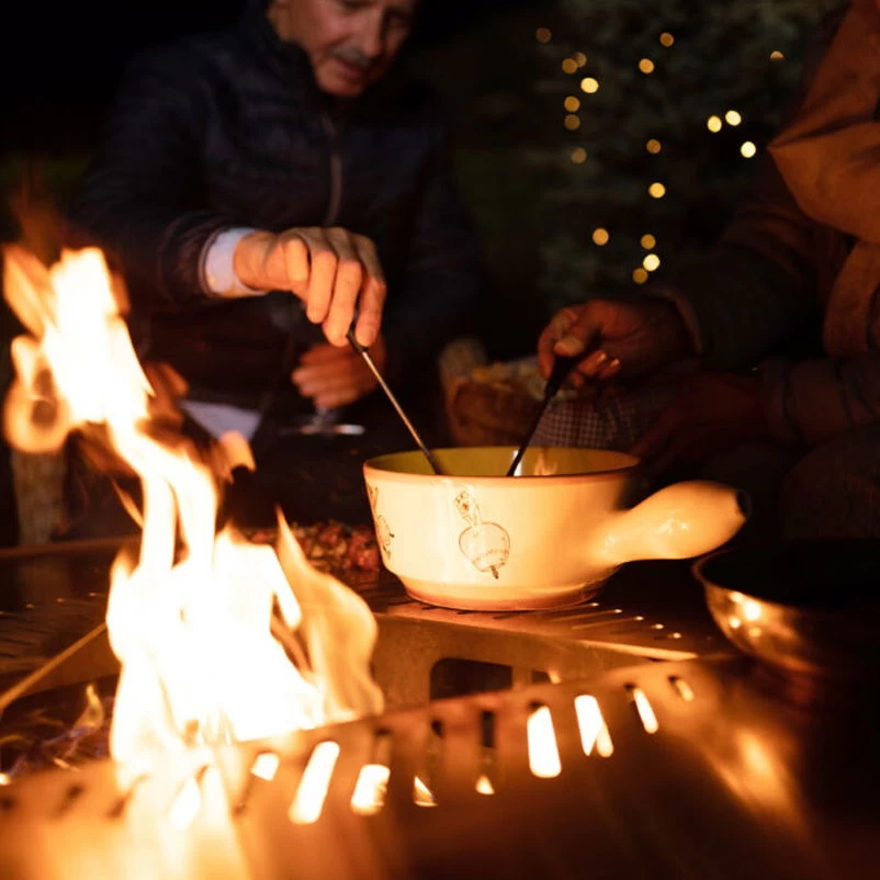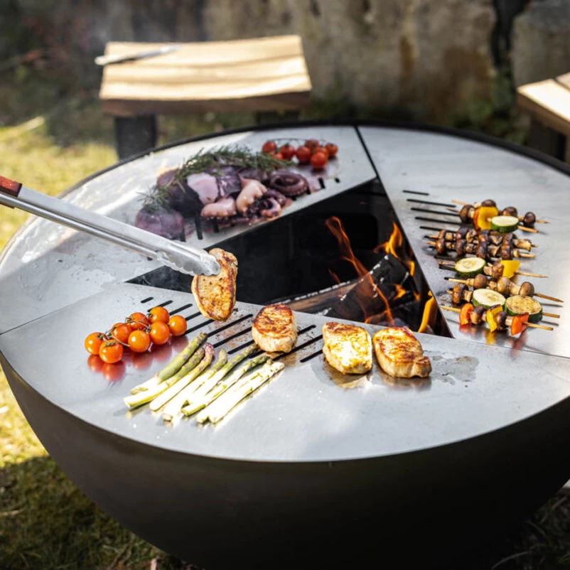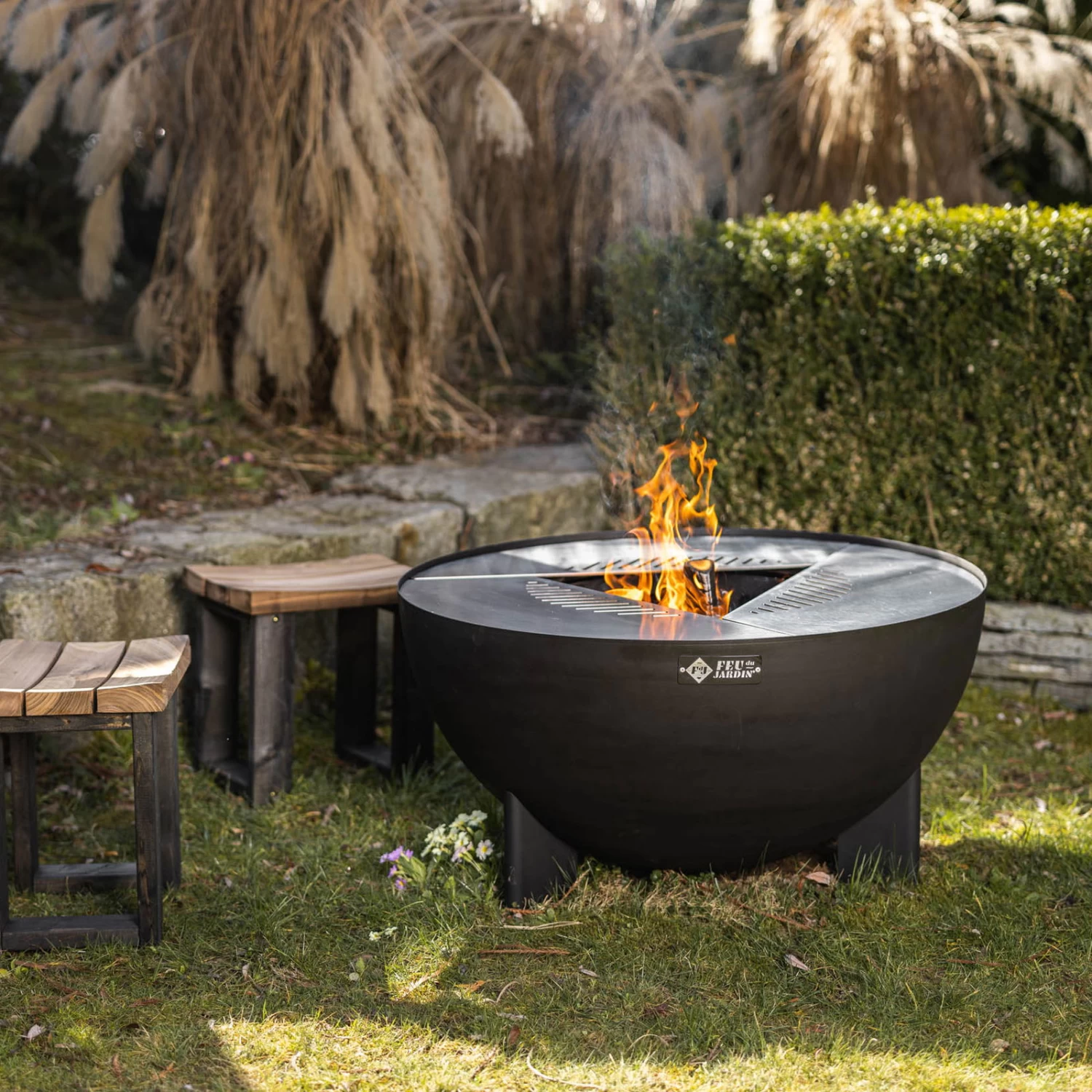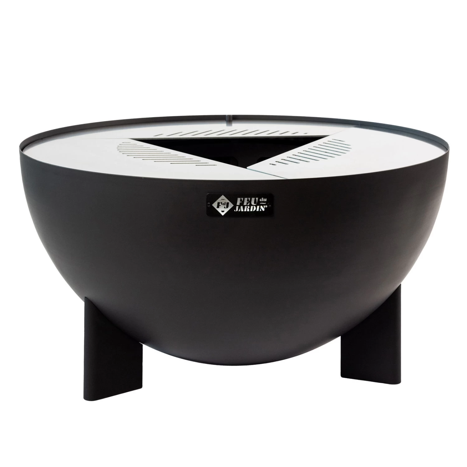 Verbringen Sie gemütliche Abende an wärmendem Lagerfeuer und genießen Sie den Tanz der Feuerzungen. Die schwarze Feuerstelle TRIA von Feu du Jardin setzt dank der eleganten Designlösung dekorative Akzente im Garten oder auf Ihrer Terrasse und lässt sich auf Wunsch als Grill- oder Kochstelle einsetzen.