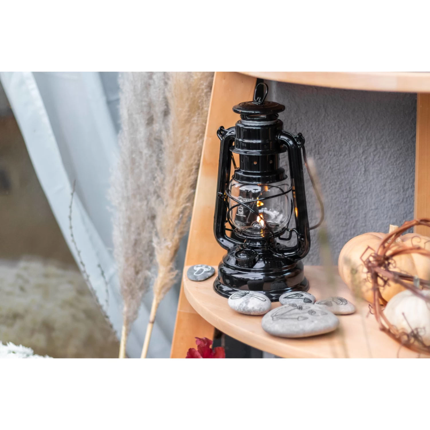 Mit der Sturmlaterne ‚Baby Special 276‘ ist für Beleuchtung im Außenbereich bestens gesorgt. Die Sturmlaterne von Feuerhand in leuchtendem tiefschwarz überzeugt mit einem ruhigen Flammenbild und einer langen Brenndauer. Diese stromlose Lichtquelle brennt trotz stürmischem Wind und heftigen Niederschlägen einfach weiter.