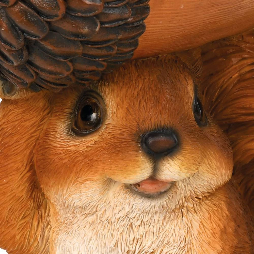 Ein niedliches Eichhörnchen trägt eine Futterschale und lädt Artgenossen oder Wildvögel aus dem Garten zu einem Festmahl ein. Diese liebevoll gestaltete Futterstelle ist aus widerstandsfähigem Polyresin gefertigt und sowohl frost- als auch UV-beständig. Wir empfehlen, die Futterschale mit Eichhörnchen regengeschützt aufzustellen.