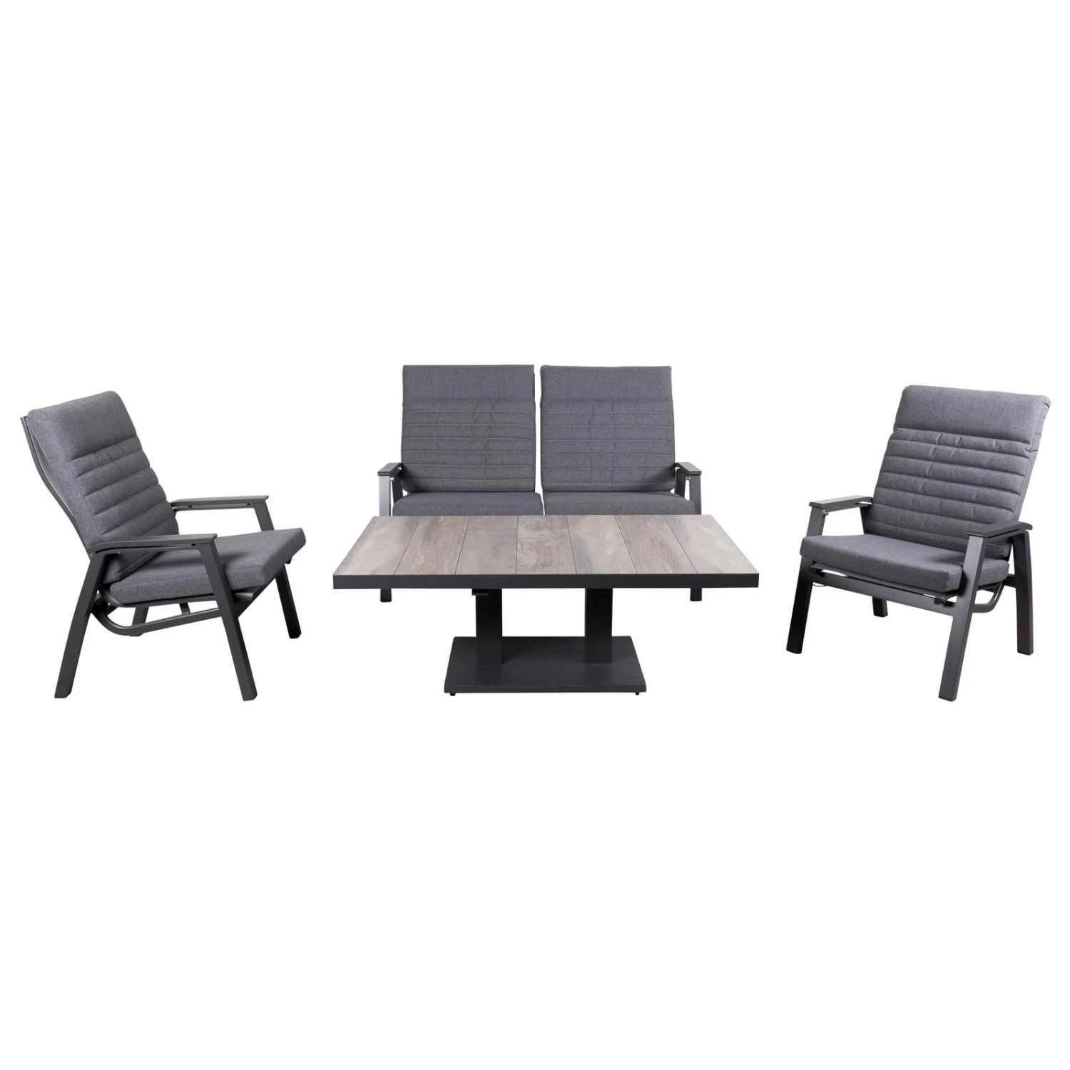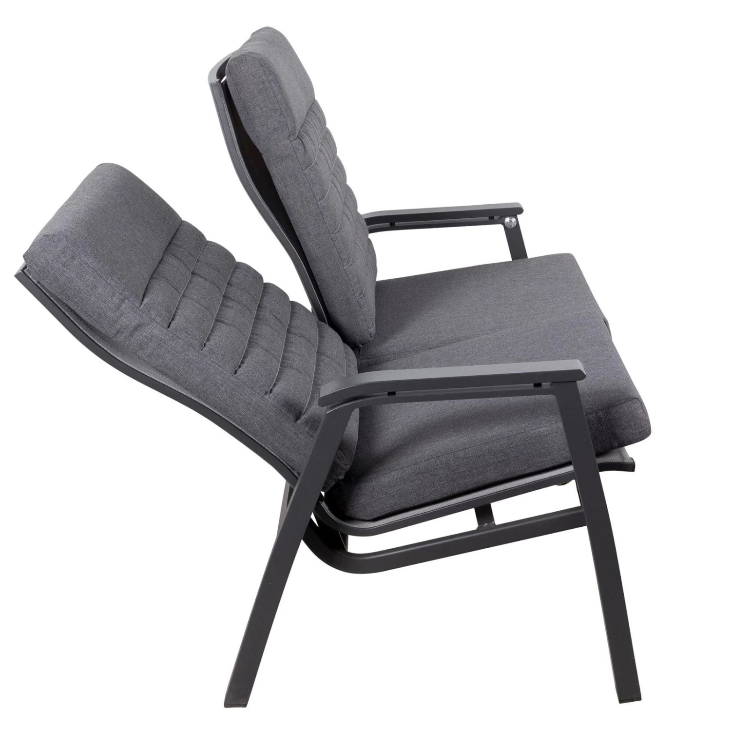 Bei dem ansprechenden Alu-Loungeset Paris inklusive Auflagen handelt es sich um ein kompletten Möbelset für den Garten oder die Terrasse. Die Loungemöbel laden zum Verweilen und Entspannen ein. Besonders praktisch ist, dass sich die Rückenlehnen der Sessel sowie der Bank einzeln stufenlos verstellen lassen. Damit es noch bequemer wird, geht die Sitzfläche mit nach vorne, sodass ein optimaler Sitzkomfort entsteht.