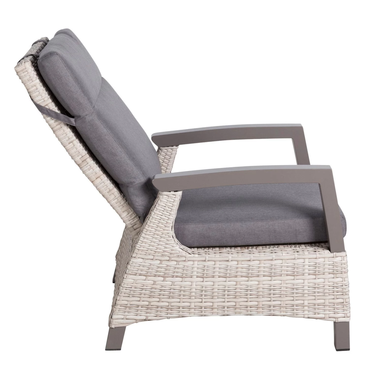 Für mehr Bequemlichkeit sorgt die dazu harmonisch passende Auflage aus Polyester und die stufenlos verstellbare Rückenlehne. Der moderne Sessel ist für den dauerhaften Einsatz im Außenbereich konzipiert und somit wetterfest und pflegeleicht.