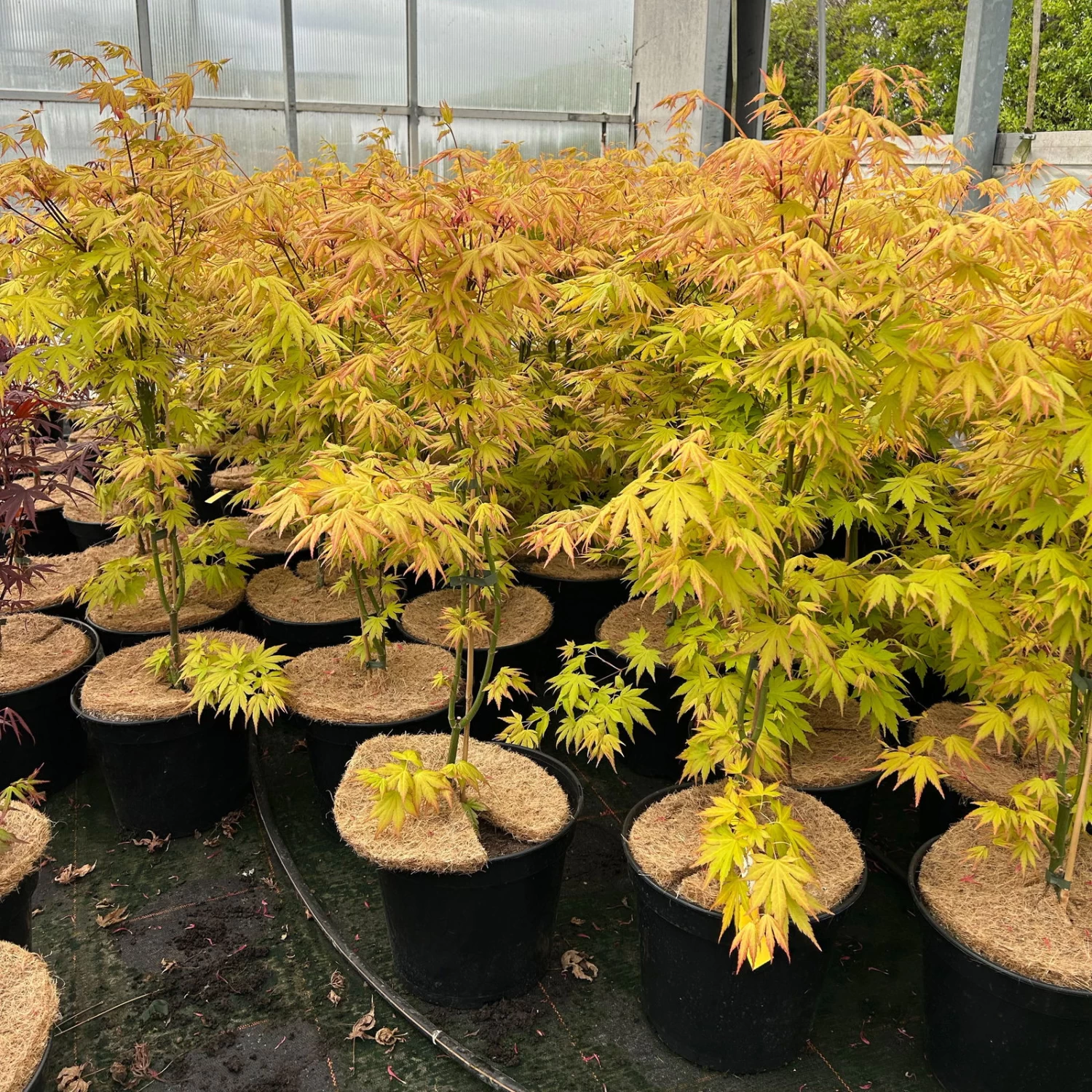 Tipp: der frische Austrieb, der im Gewächshaus überwinterten Japanischen Ahorn, ist sehr empfindlich. Daher im Frühjahr die Pflanzen mit frischem Austrieb vor Nachtfrösten schützen und an einem schattigen Standort im Garten an die Außentemperaturen und die direkte Sonneneinstrahlung gewöhnen.