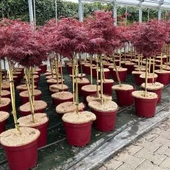 Tipp: der frische Austrieb, der im Gewächshaus überwinterten Japanischen Ahorn, ist sehr empfindlich. Daher im Frühjahr die Pflanzen mit frischem Austrieb vor Nachtfrösten schützen und an einem schattigen Standort im Garten an die Außentemperaturen und die direkte Sonneneinstrahlung gewöhnen.