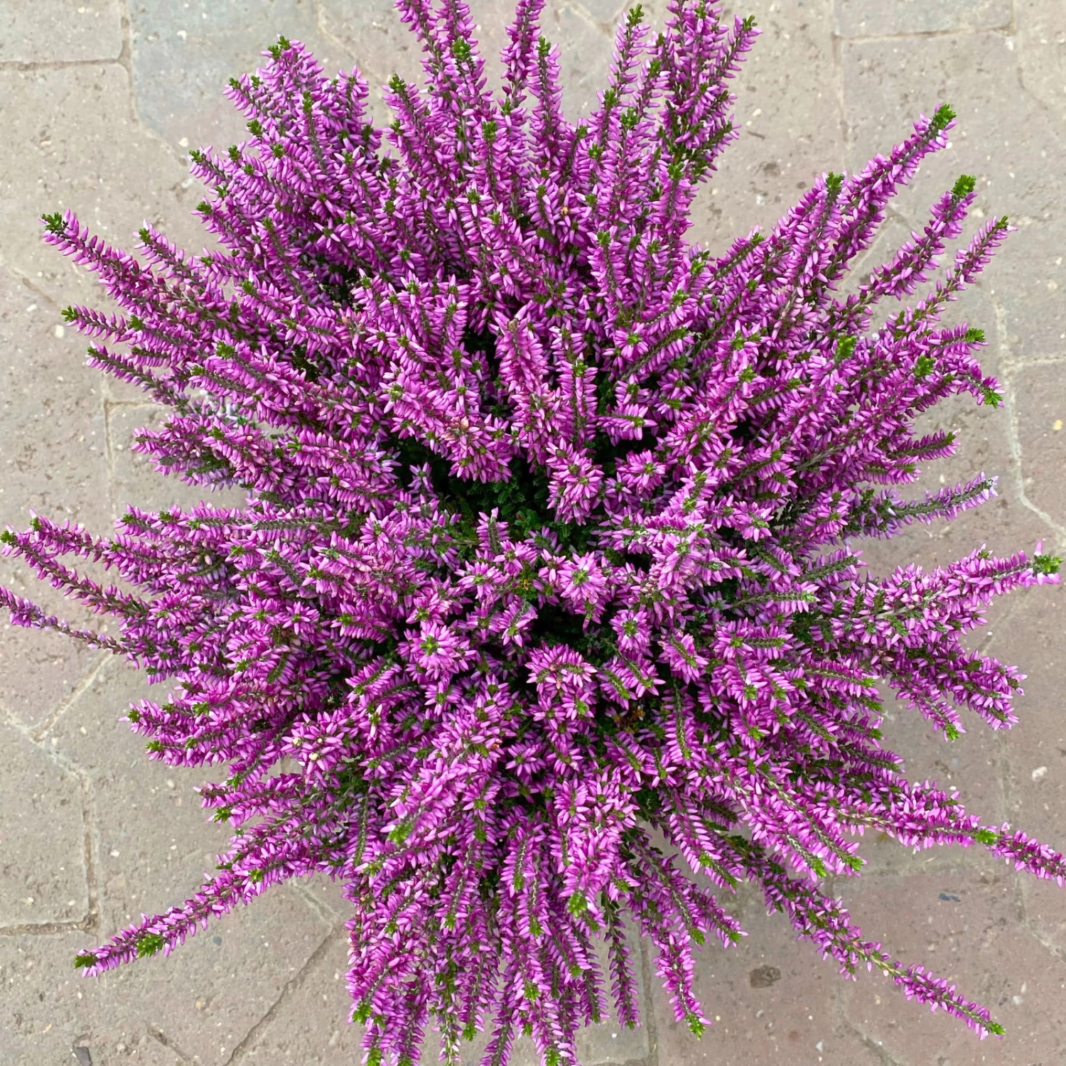 Die kleinen Blüten erscheinen bei der Knospenheide nur, wie der Name erahnen lässt, als Knospen und blühen nicht auf. Dadurch kann ihnen weder Wind noch Regen etwas anhaben und die farbigen Knospen bleiben bis in den Winter hinein schön. Die Calluna bringt durch die Farbe lila Abwechslung in Ihre Bepflanzung.