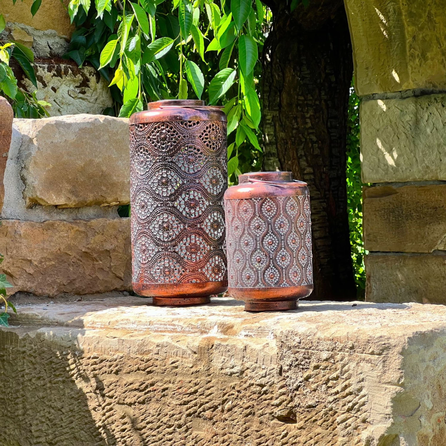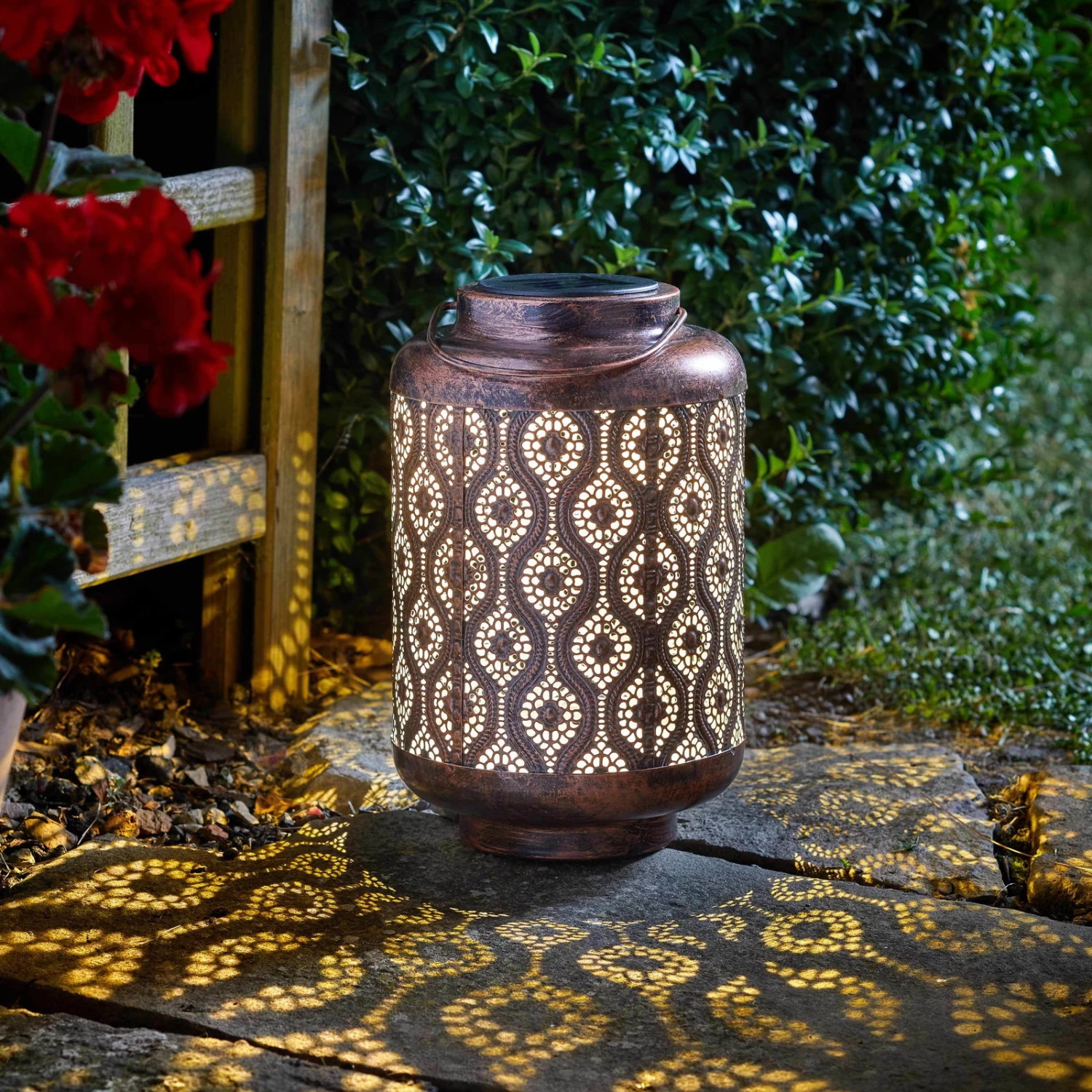 Die Solarlaterne Adana von unserer Eigenmarke setzt dekorative Lichtakzente und wertet den Außenbereich Ihres Hauses merklich auf. Diese solarbetriebene Leuchte besticht mit anspruchsvollem Design und einer aufwendigen Verarbeitung. Ihrem Garten, Ihrem Balkon oder Ihrer Terrasse verleiht das Modell orientalisches Flair und fügt sich in Ihr Beleuchtungskonzept flexibel ein. Dank des Solarbetriebs benötigt die Laterne keinen Stromanschluss und lädt sich tagsüber auf, um Sie beim Einbruch der Dunkelheit mit magischen Lichtspielen zu verzaubern. Sie können je nach Wunsch die Solarlaterne Adana als Tisch- oder Bodenleuchte einsetzen und mit dieser formschönen Lichtquelle den Eingangsbereich verschönern oder zum Beispiel für romantisch-exotische Lichtmomente bei einer Feier sorgen.