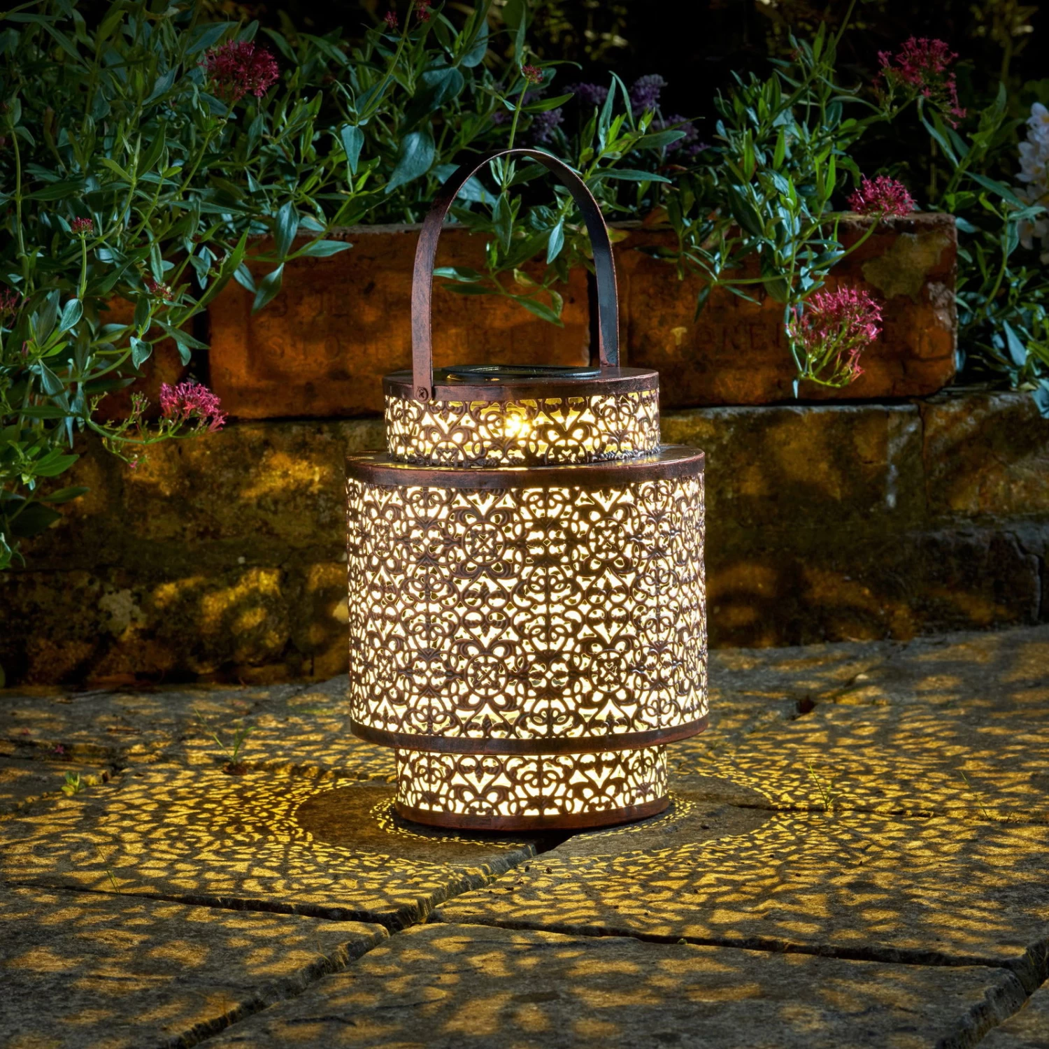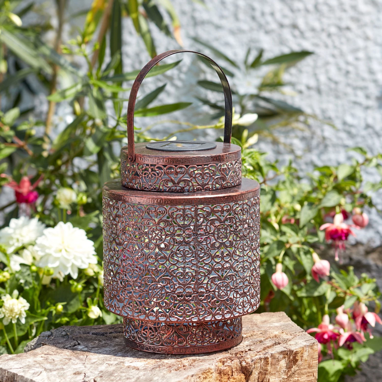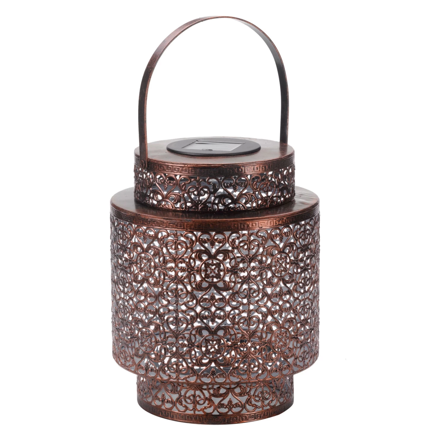 Die praktische und wunderschöne Solarlaterne „Tangier“ aus Metall begeistert im nordafrikanischen Design und trendiger Farbe. Die Solarlaterne ist für den Outdoorbereich bestens geeignet und dafür konzipiert. Am Tag überzeugt die Solar Laterne als charmante Deko, bei Dunkelheit erhellt sie Ihren Garten, die Terrasse, den Balkon oder den Weg zum Haus. Die solarbetriebene Leuchte besitzt ein warmweißes, angenehmes Licht und bringt Helligkeit nach Draußen.