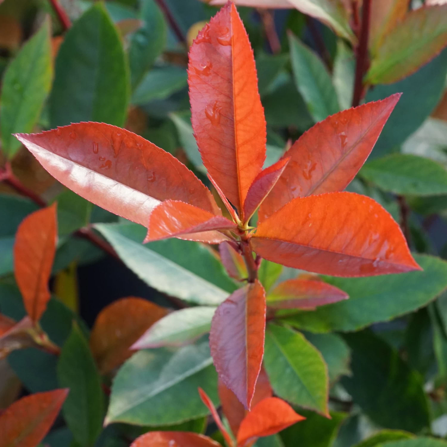 Die Kompakte Glanzmispel ist ein vieltriebiger, dichter Strauch und zählt zu den immergrünen Pflanzen. Die Kompakte Glanzmispel besitzt einen wunderschönen, roten Austrieb, der im späten Frühjahr vergrünt. Eine tolle Heckenpflanze, die für einen dichten Wuchs jährlich geschnitten werden sollte.