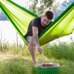 Die Singe-Reisehängematte Colibri 3.0 ist perfekt geeignet zur Entspannung für Unterwegs. An jedem Ort der Wel lässt sie sich dank den CrocodileHook Aluminium-Haken sicher aufhängen. Dank des extra breiten Gurts können Sie diese Reisehängematte an jeden Baum anbringen ohne diesen zu beschädigen. Die diagonale Liegeweise ist optimal für eine gesunde Liegeposition geeignet. Der hautverträgliche Stoff ist dabei so konzipiert, dass vor allem an den sonst so empfindlichen Kanten eine gute Reißfestigkeit besteht. Die Verbindung aus modernen Haken und einem leistungsstarken Gurt lässt zudem eine individuelle Einstellung der Höhe und Länge zu, sodass Sie sehr flexibel in der Anwendung bleiben. Zum Reinigen können Sie die Singe-Reisehängematte Colibri 3.0 per Hand waschen oder als Schonwäsche in die Maschine geben.