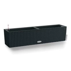 Der Pflanzkasten ‚Balconera Cottage 80‘ von Lechuza präsentiert sich in elegantem Lichtgrau und besticht durch trendige Flechtoptik. Ein Pluspunkt dieses hochwertigen Balkonkastens aus UV-beständigem Kunststoff ist eine integrierte Bewässerung. Je nach Wunsch können Sie den Pflanzkasten auch für Indoor-Begrünung verwenden.