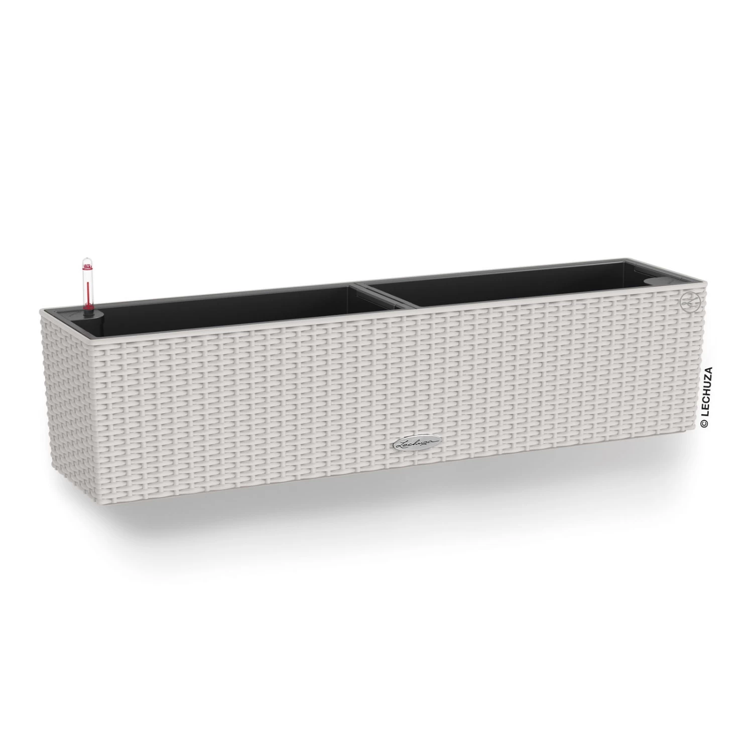 In dem dekorativen Pflanzkasten ‚Balconera Cottage 80‘ von Lechuza fühlen sich Ihre Balkon- oder Zimmerpflanzen wohl. Der smarte Blumenkasten verfügt über ein integriertes Bewässerungssystem für optimale Wasserversorgung. Die angesagte Flechtoptik verleiht dem Balkonkasten in Lichtgrau einen modernen Touch.
