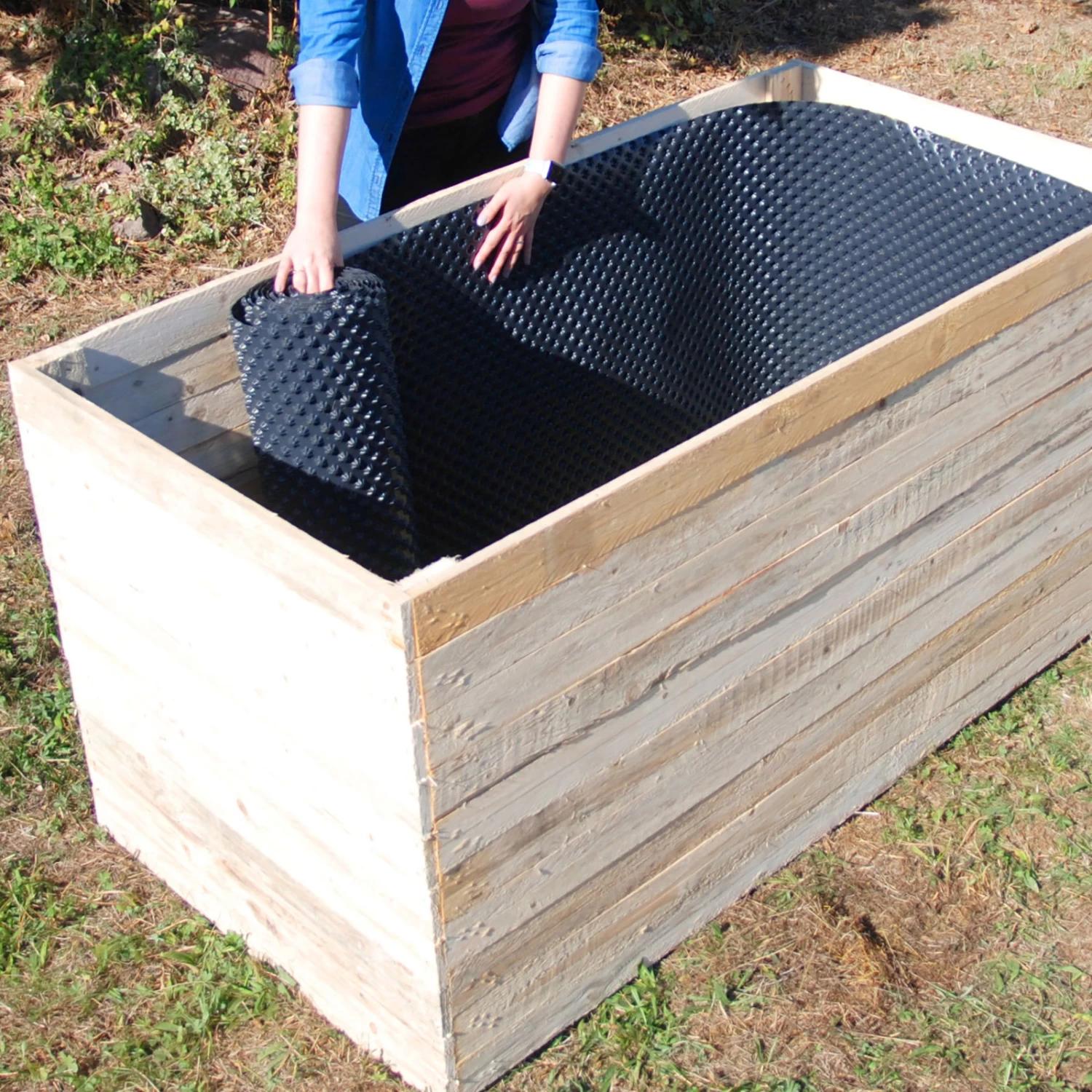 Diese schwarze Hochbeet-Noppenfolie ist zum Schutz der Hochbeete aus Holz konzipiert. Dank der Noppenfolie verlängert sich die Lebensdauer Ihres Hochbeets, wobei der innovative Kunststoff für optimale Belüftung sorgt. Schneiden Sie die Noppenfolie mit einer Schere zu, um den Schutz an Ihr Hochbeet anzupassen.