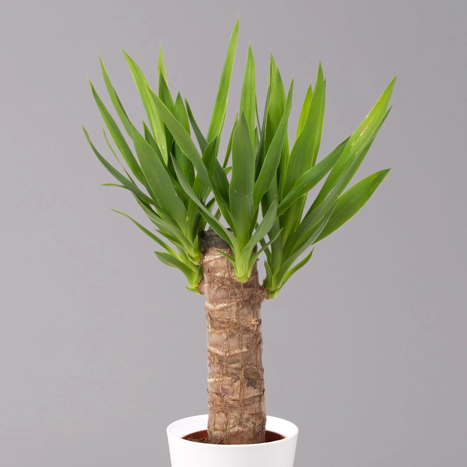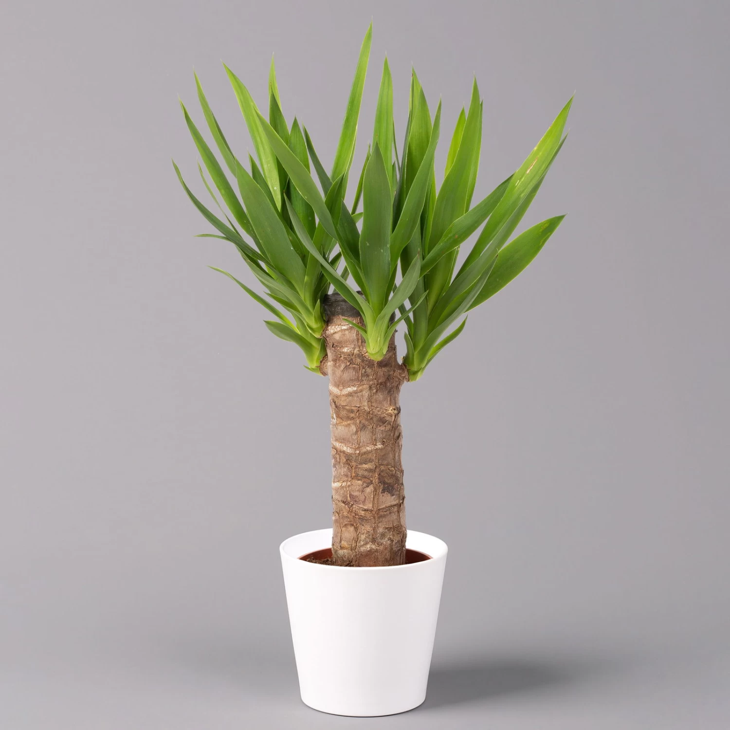 Ein exotischer Klassiker unter den Zimmerpflanzen ist die Palmlilie (Yucca elephantipes). Die hübsche Raumpflanze aus der mexikanischen Tropenregion ist dank ihrer leichten Pflege auch hierzulande sehr beliebt und eignet sich für Schlafzimmer, Wohnräume, Treppenhäuser oder Büros. Bei Pflanzen-Kölle können Sie die Trendpflanze Palmlilie kaufen und in einem geeigneten Blumenkübel an einem hellen und sonnigen Standort auf der Fensterbank oder auf einem Pflanzentisch platzieren. Damit die unter dem botanischen Namen bekannte Yucca elephantipes, oder auch Yucca-Palme genannt, optimal wächst und gedeiht, braucht die Pflanze ausreichend Sonnenlicht, da das Wachstum ansonsten stark bis ganz beeinträchtigt wird. Mit ihren hellgrünen und schlanken Blättern ist die Palmlilie eine schicke Zierpflanze. Für die Pflege der Pflanze reicht mäßiges Gießen, einen zu nassen Boden sollten Sie unbedingt vermeiden und die Palmlilie erst wieder gießen, wenn die Erdoberfläche abgetrocknet ist. Bitte stellen Sie Ihre Yucca außerhalb der Reichweite von Kindern oder Hautieren auf, da sie giftig ist und die scharfkantigen Blättern zu Verletzungen führen können.