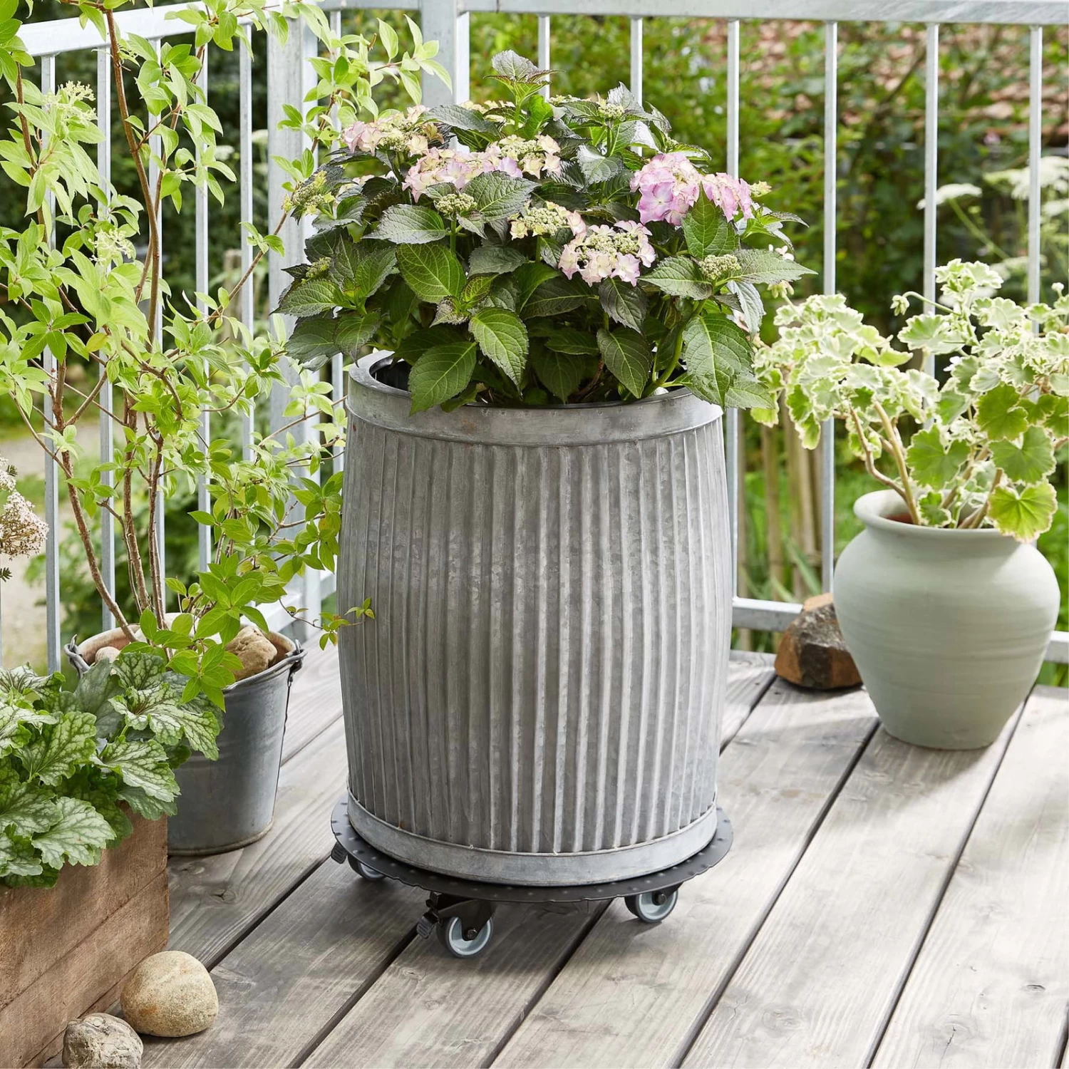Wenn Ihre Kübelpflanzen immer wieder umziehen müssen, dann ist der runde Pflanzenroller Alaska mit einer Tragkraft von bis zu 150 Kilogramm genau die richtige Wahl. Gestalten Sie Ihren Wintergarten um oder bringen Sie im Frühling Ihre Palmen nach draußen – mit dem Pflanzenroller kein Problem! Der Roller ist einfach zu manövrieren und sorgt dank einer genoppten Alu-Tragfläche für sicheren Transport.