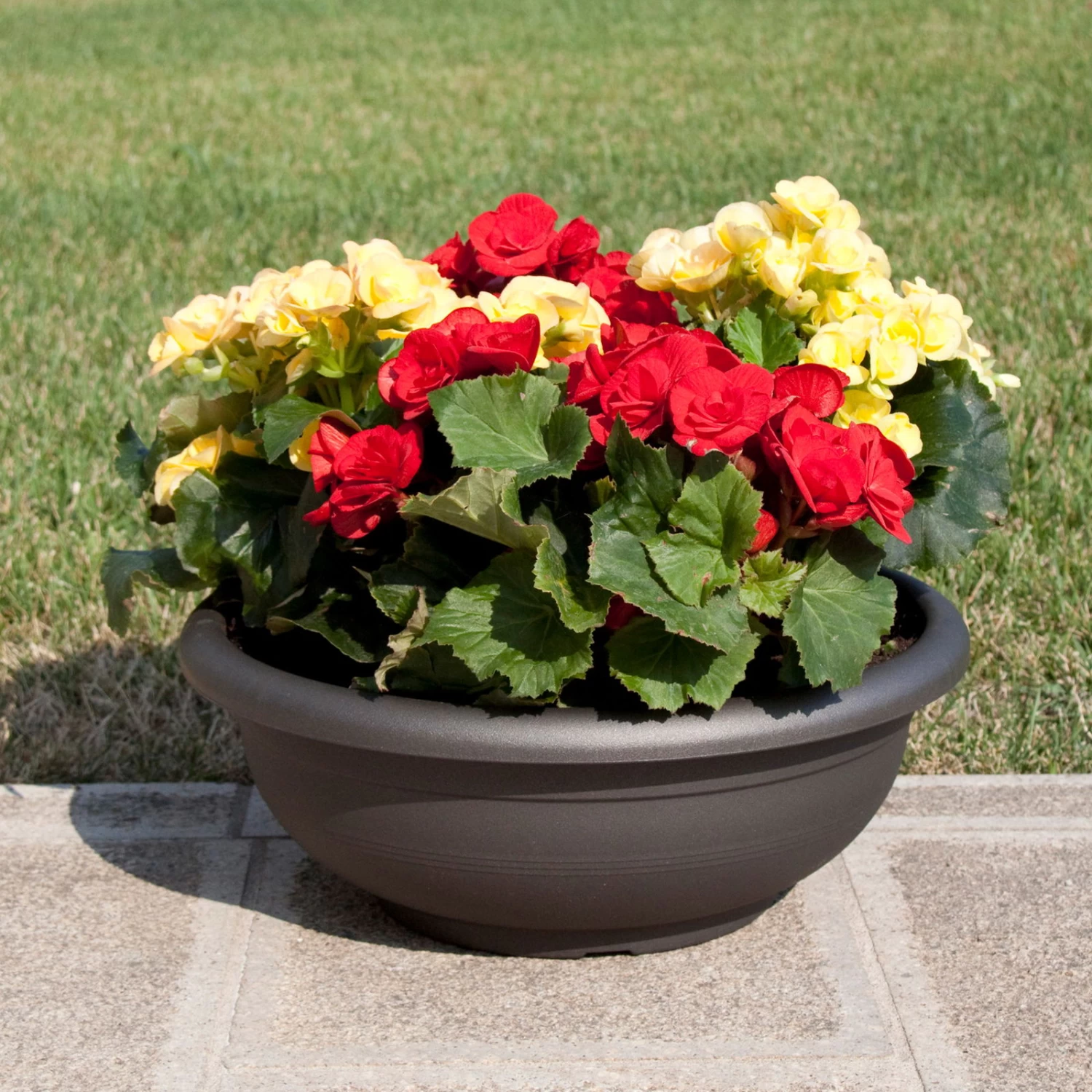 Auch in Anthrazit ein Blickfang: Traditionelle, runde Pflanzschalen wie die Pflanzschale Olimpo von Euro 3 Plast werden Jahr für Jahr mit den schönsten Blumen und Pflanzen bepflanzt, um als herrlicher Blumenschmuck auf Balkon und Terrasse oder auch am Hauseingang zu stehen.