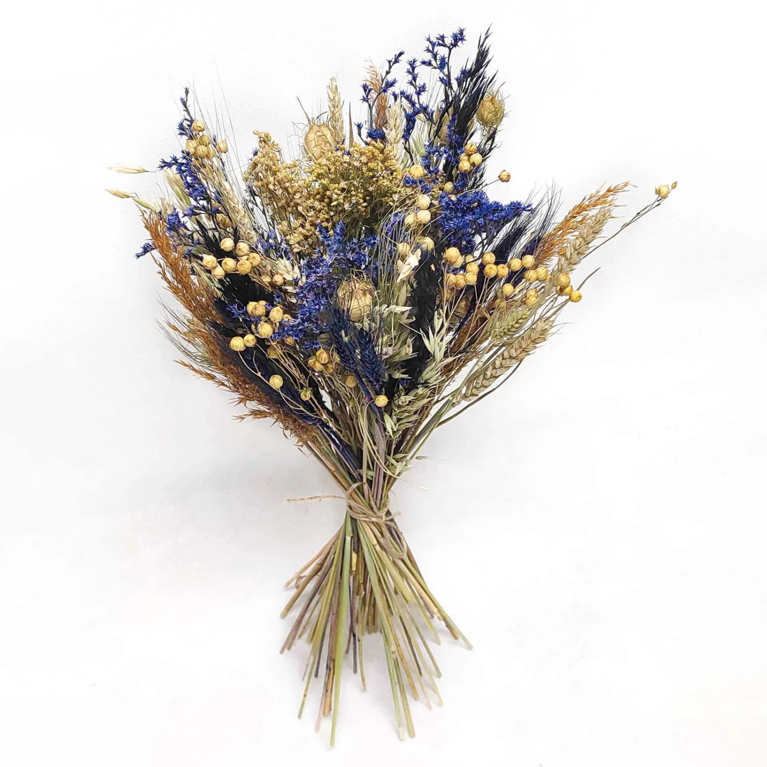 Dieses toll aufeinander abgestimmte Trockenblumen-Set zum Selberbinden vereint naturale Töne mit farbigen Akzenten in strahlendem Blau. Ob zusammen oder getrennt arrangiert, das DIY-Set wertet jede Einrichtung mit filigranen Details auf. Kleiner Tipp: In einer passenden Vase kommt die Ausstrahlung Ihrer Trockenblumen noch mehr zur Geltung.